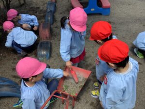 今日の午前中はとても良い天気でした。園児たちは外で元気に遊びました。