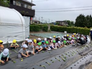 年長児がさつまいもの苗植えを行いました。みんな元気に育つといいな。収穫は秋です