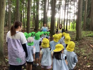 子どもたちは、森に来ただけでウキウキです。「早く遊びたい!」そんな気持ちが態度に表れています。