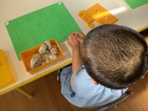 お片付けも大切な活動です。中にはあまり気が進まない子もいましたが、先生に促されて渋々片付けを行います。こういった一つ一つの活動をしっかりと行うことが、大切です。