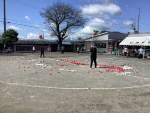 運動会PTA種目、「ゆらゆら玉入れ」を紹介します。当日は約60人の保護者の方々にご参加いただく予定になっています。とてもありがたいです。