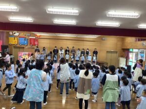 園長からは、誕生日をお祝いすることの大切さ、おうちの人への感謝の気持ちを忘れないことの大切さについて、話がありました。