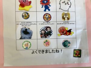 6つシールがたまったら、園長からご褒美シールをもらうことができます。