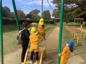 今日は秋の遠足で、とちぎわんぱく公園に行ってきました。なんとお休みの子はいませんでした。みんなで実施できたことがとても嬉しかったです。