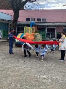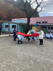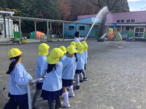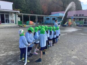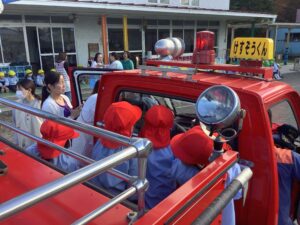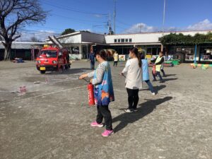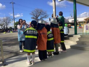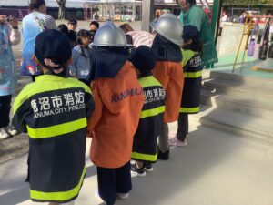 消防士さんからは、たくさんのことを教えていただきました。とても優しい消防士さんで、訓練が終わってしまうことを悲しむ子もいました。
