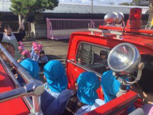その後、職員による消火活動、年長組さんによる放水体験、けすぞう君体験乗車と様々な活動に意欲的に取り組むことができました。