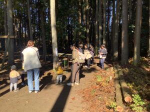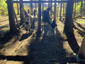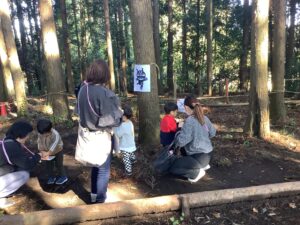今日は未就園児親子教室が行われました。仁神堂幼稚園には、わんぱくの森があります。今日はその森の中でスタンプラリーを行いました。