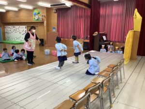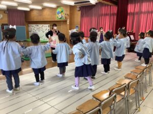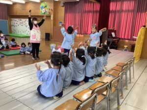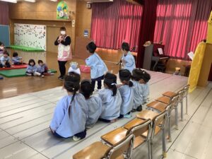 年少のちゅうりっぷ組では、劇「てぶくろ」の練習に取り組んでいました。