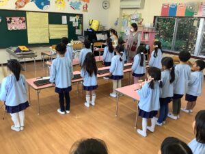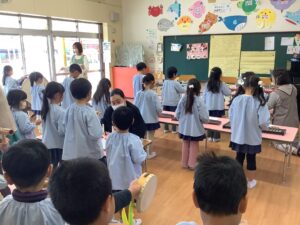 まずみんなで歌を歌います。年長組さんらしく、明るく元気にリズム良く歌うことができています。