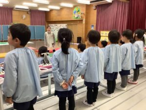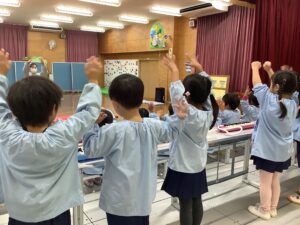 今日は年中組さんのお遊戯会の練習を紹介します。