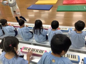 みんなピアノや先生の手拍子に一生懸命あわせようとしています。
