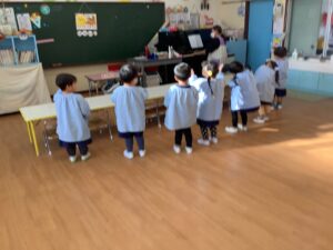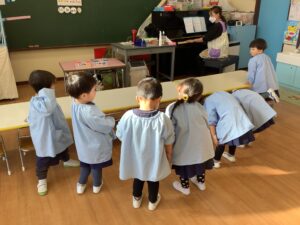 仁神堂幼稚園の満3歳クラス、つくし組のお友だちも一生懸命、お遊戯会の練習に取り組んでいます。
