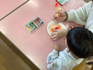 今日はアンパンマンクラブでコマ作りを行いました。12組の親子に集まっていただきました。