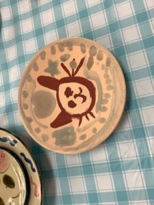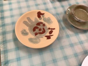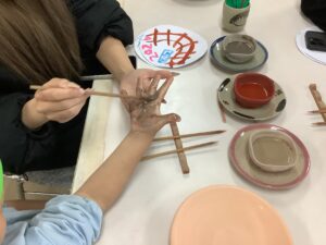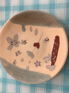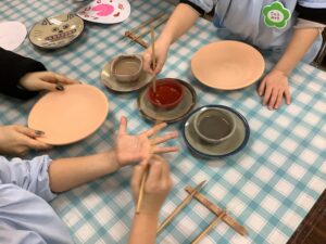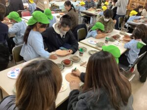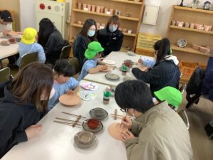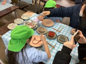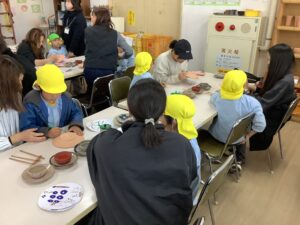 今日は、年長組さんが卒園記念制作として益子に行き、絵付けに取り組みました。