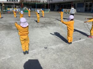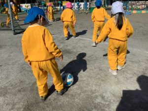 毎週火曜日は、体操教室です。みんな大好き三森先生から、今は縄跳びとサッカーを教えていただいています。