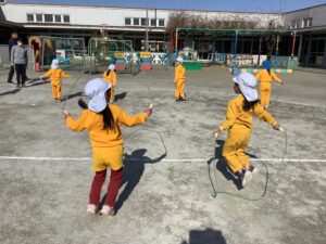 まだうまくいかない子もいますが、真剣に練習に取り組む姿はとても素晴らしいです。だんだんスムーズに跳べるようになる子が増えていています。後ろ跳びに挑戦する子もいます。