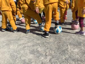 サッカーも子どもたちは大好きです。今日はドリブルのレベルアップです。