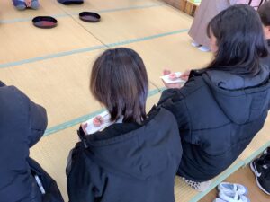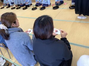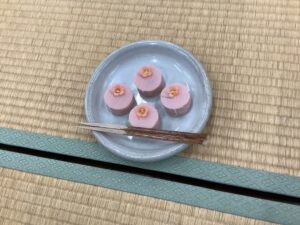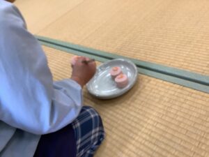 次にお菓子が配られます。「お先に。」「どうぞ。」と相手を思いやる気持ちを忘れません。