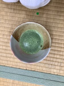 さて、いよいよお家の方にお茶をたてます。少し緊張がとけ、和やかな雰囲気の中で、お家の方へのお点前披露が行われました。