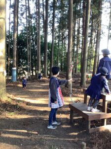 わんぱく保育の子どもたちが、仁神堂幼稚園わんぱくの森で遊びました。みんな久しぶりの森で、テンションマックス。笑顔と歓声があがる時間でした。