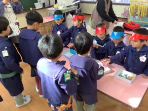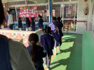 年中組さんのもとには、たくさんの子どもたちが行列を作りました。
