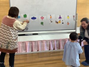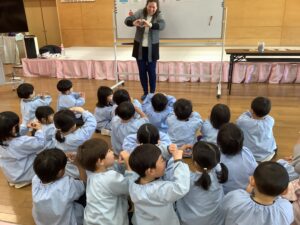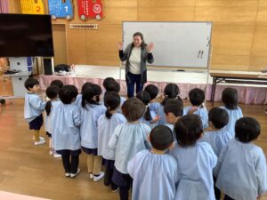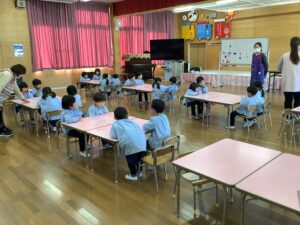 シージー先生の英語活動が行われました。年少組のお友だちもだんだんと慣れてきたようです。