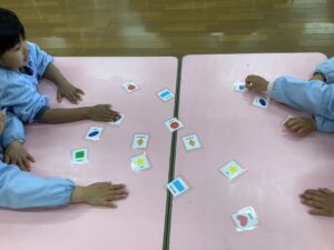 最後はカルタです。形が描かれた同じカードを2枚みつけます。