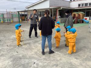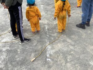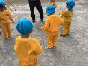 今日は、なわとびを使って、いろいろな遊びを体験します。