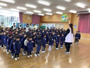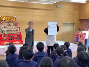 2月28日は、仁神堂幼稚園の創立記念日です。昭和52年に創立され、今年で49年目になります。昨日、記念写真を撮り、今日は記念集会を行いました。