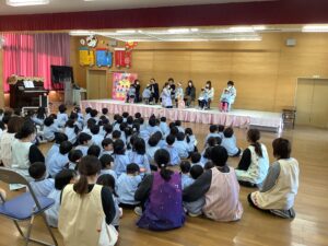 今年度最後、3月誕生会が行われました。今日は6人のお友だちの誕生をみんなでお祝いしました。