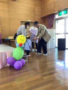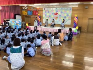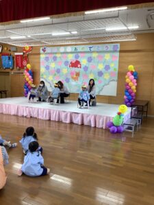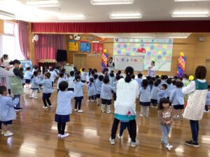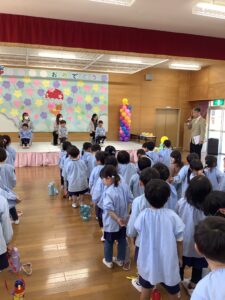 今日は4月誕生会でした。3人のお友だちの誕生日をみんなでお祝いしました。