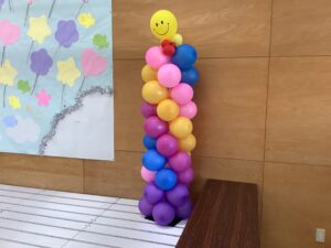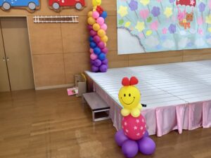「森のこびと」スタッフさんからいただいたバルーンは、まだまだ子どもたちを見守ってくれています。