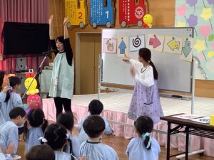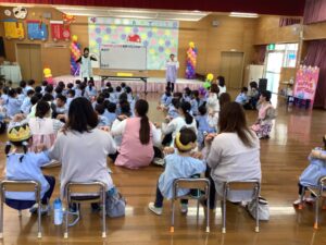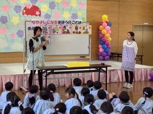 「なかよしになる まほうのことば」では、「あそぼう」「かして」「いいよ」「どうぞ」などの言葉をみんなで考えました。笑顔あふれる時間となりました。